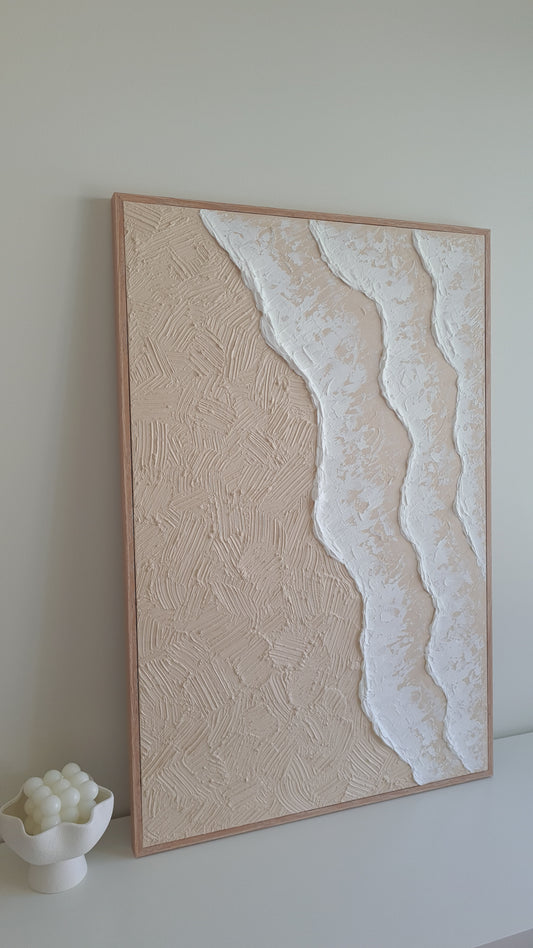 Textured Art Ocean Waves Beach Sand Coastal Wall Art Canvas Framed (PRE-ORDER)