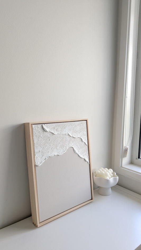 Textured Art Ocean Waves Wall Art Neutral Light Ash Beige - 42x32cm | Coastal Collection |