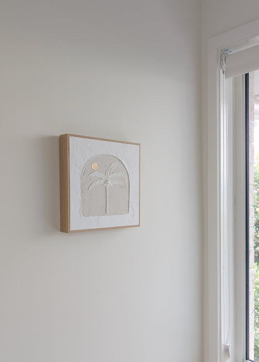 Minimalist Palm Tree Textured Wall Art – Neutral Coastal Boho Decor 25x25cm