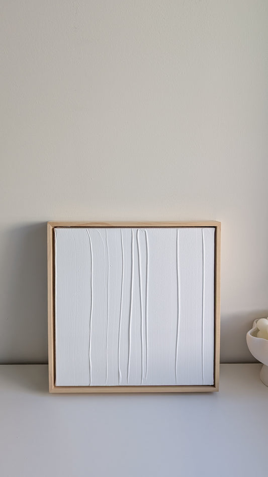 White Minimalist Textured Art | White Neutral Artwork in Pinewood Frame 31.5x31.5cm