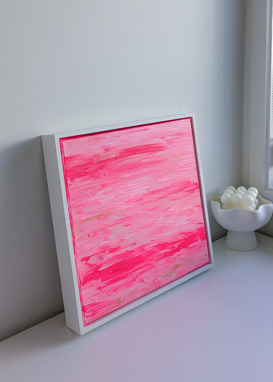 Abstract Textured Wall Art – Hot Pink in Washed White Frame, 31.5x31.5cm