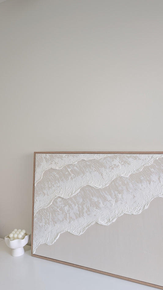Ocean Waves Textured Wall Art | Coastal Artwork in Neutral - Cream - 90x60cm