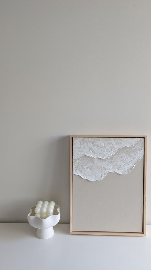 Ocean Waves Textured Wall Art | Coastal Artwork in Neutral Cream - 25x25cm