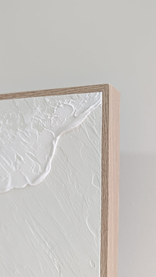 Neutral Ocean Waves Textured Wall Art – Coastal Beach House Artwork in Pinewood Frame 42x32cm