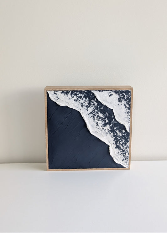 Ocean Waves Textured Wall Art – Navy Coastal Blue Artwork 25x25cm