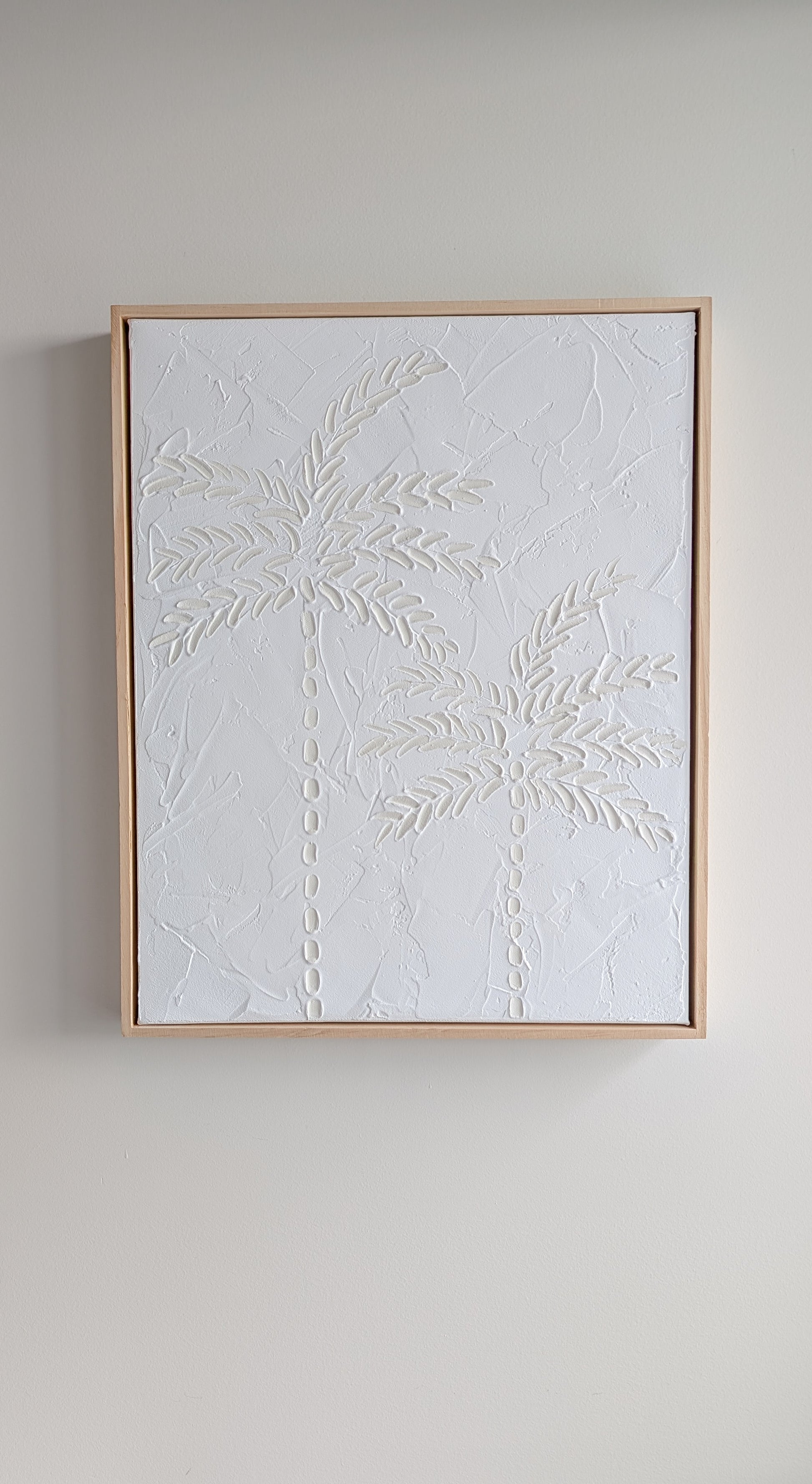 Coastal Palm Tree Textured Wall Art – Coastal Beach House Artwork Light Beige & White 52x42cm | Coastal Collection |